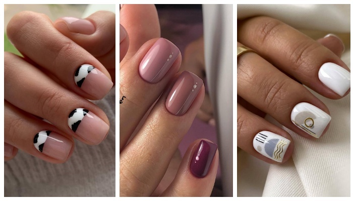 Короткие ногти — это идеальный выбор для тех, кто ценит практичность, элегантность и естественность. Они служат прекрасным холстом для нежных, аккуратных дизайнов, которые не перегружают образ, но при этом выглядят стильно и ухоженно. В отличие от длинных ногтей, короткая длина требует более лаконичного и точечного подхода к декору, что полностью соответствует актуальным трендам на минимализм и "тихую роскошь". Оставайтесь с нами и вы увидите, как можно обыграть короткую длину, используя пастельные оттенки, нюд, минималистичные рисунки и необычные принты. Абстракция и золото на молочной базе — это воплощение современного арт-минимализма. Акцент сделан на трех пальцах, где нанесены абстрактные элементы в сдержанной палитре. Этот дизайн выглядит очень дорого, утонченно и подходит даже для строгого дресс-кода, при этом оставаясь невероятно трендовым. Этот дизайн демонстрирует, как можно адаптировать яркий тренд под нежный маникюр. Принт "коровка" выполнен не по всей ногтевой пластине, а в