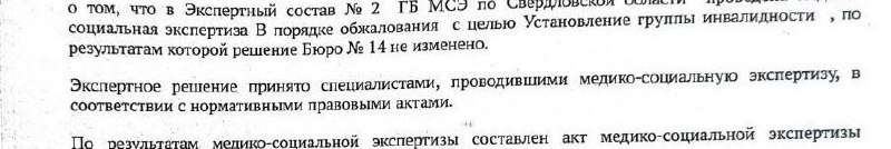 Из консультации нашего регионального представителя Свердловской области Веры Нуриевой: Суть: бойца уволили по состоянию здоровья,. В, страховая отказала выплате по увольнению. МСЭ отказала установлении инвалидности. Установление категории годности «В» по ст. 82, пункту «в» является правомерным и соответствует пп565 и свидетельству о болезни 20/13.. В Заключении ввк прямо указано «на основании статьи 82 пункта статьи в графы III Расписания болезней». В свидетельстве о болезни ключевой диагноз, подпадающий под статью 82, это отсутствие селезенки (военная травма, 82-р). Пункт "в" статьи 82 прямо относит в т.ч последствия ранений, травм и операций с незначительными клиническими проявлениями (... отсутствие селезенки), те кат.В Статья 27 (повреждение нерва): Указано, что нарушение функции отсутствует, поэтому это не является самостоятельным основанием для категории «В». Статья 65 (переломы позвоночника и таза): Указано, что переломы консолидированы (срослись) без нарушения функции, что