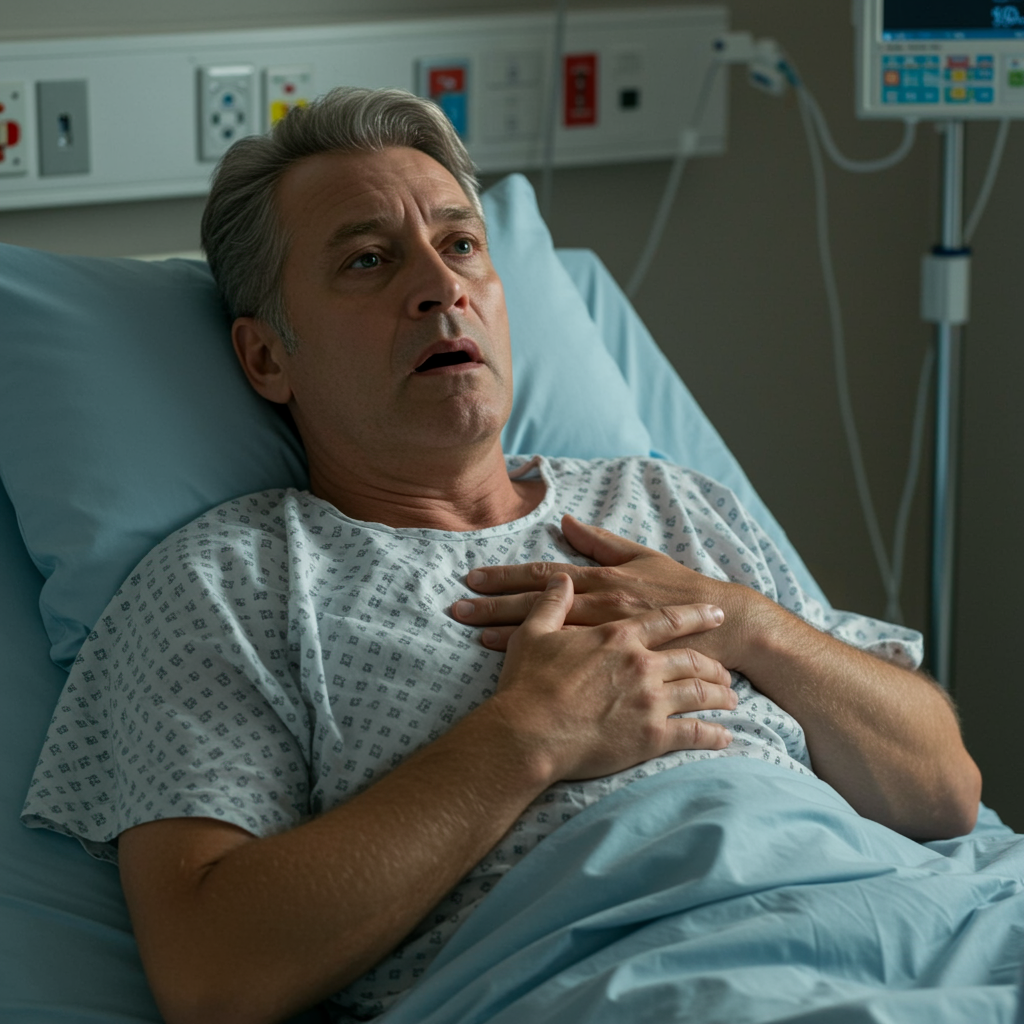 Захожу — и вижу перед собой мужчину лет шестидесяти, с глазами размером с блюдца и руками, которые трясутся, как осиновые листья на ветру. Он сидит на краешке кушетки и обеими руками судорожно держится за грудь, словно там у него не сердце, а граната с выдернутой чекой.