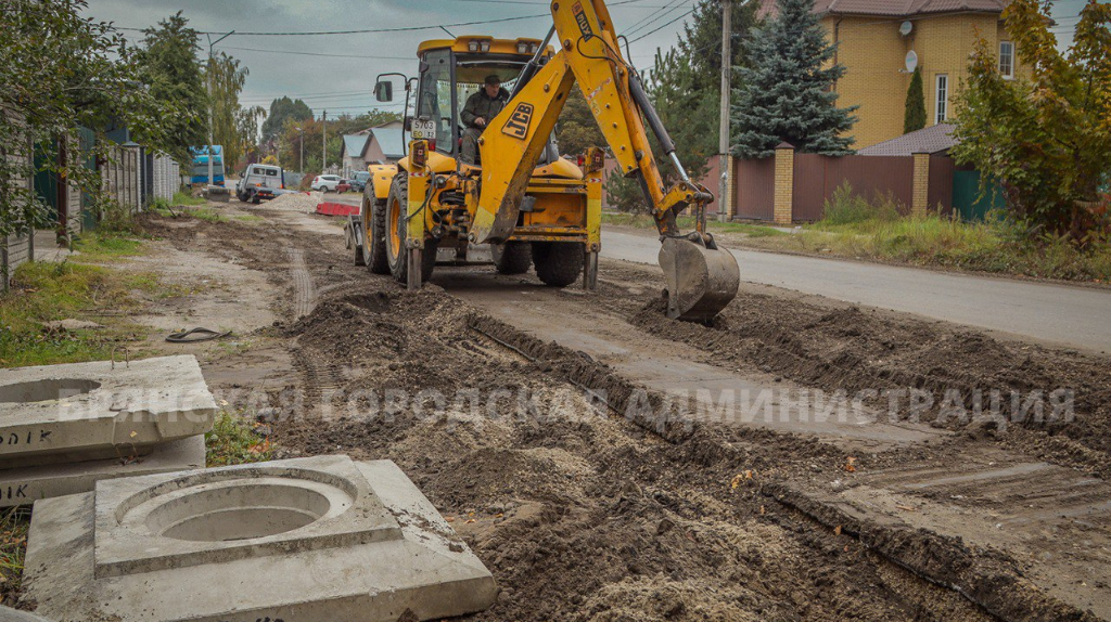 На участке от улицы Калужской до Молодой Гвардии специалисты строят ливневую канализацию. Для отведения воды под землёй прокладывается труба диаметром 500 мм.