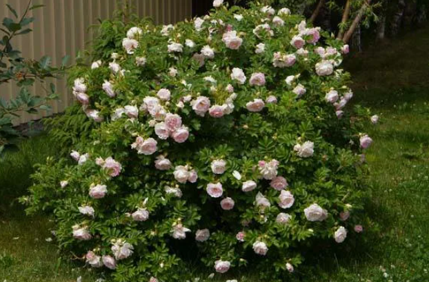 Компактный пирамидальный куст высотой до 2 м. Цветки полумахровые, чашевидные, нежно-розовые (на солнце могут выгорать до белого). Бутоны продолговатые, заострённые — очень изящные.