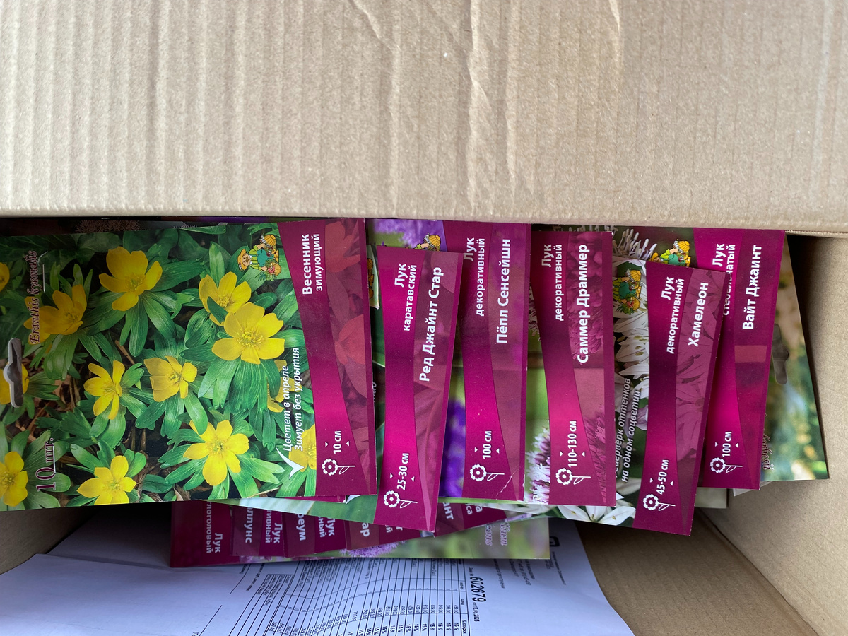 Практически в одно время пришли два заказа с луковичными от Поиска и оптхоза. Состояние хорошее, немного подпорчена лишь одна луковица гиацинтов, подробнее ниже. У Поиска у меня был большой заказ, в основном декоративные луки, немного разбавлены весенником, хионодоксами и гиацинтами. Заказанные тюльпаны Грейга, к сожалению, не поступили к поставщику и были удалены из заказа. Состояние луковиц хорошее, визуально у посадочного материала повреждений нет. Единственное замечание к одной упаковке гиацинтов, там на луковице был грибок/плесень, поэтому весь заказ уже обработан препаратом "Максим Дачник", а при посадке возможно еще обработаю фундазолом. Заказ от Оптхоза доставили в хорошем состоянии (upd - после вскрытия упаковки, оказалось, что нет, первое впечатление - без очков смотрела), пришли мои необычные тюльпаны: К тюльпанам я заказала еще кандык двух сортов, первый раз буду сажать этот цветок. Ну и остальная часть заказа - это декоративные луки и одна упаковка смеси ботанических тюльп