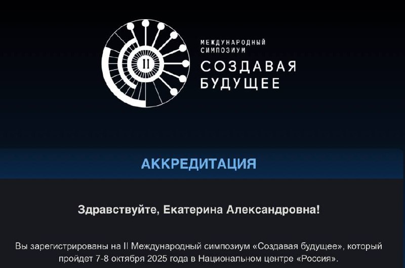 Благодарю за приглашение на экспертную сессию международного симпозиума «Создавая будущее», где обсудим такие важные вопросы, как: ✔️социальное прогнозирование, ✔️социальное проектирование, ✔️технологические тренды будущего, ✔️искусственный интеллект, ✔️биотехнологии. Уверена, работа будет продуктивной и интересной.