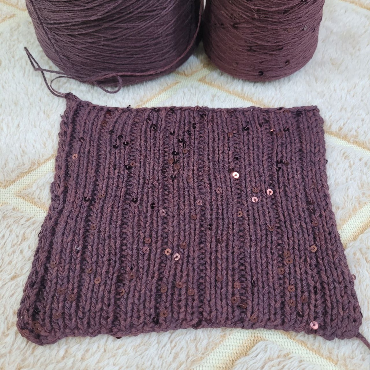 🧵🌿 Приветствую всех поклонников ручного вязания и читателей канала! Сегодня хочу поделиться отличной новостью: запускаю новый проект — поло "Рене". 🎈 Это станет моим первым проектом в осеннем сезоне, и я уже чувствую приятное волнение и предвкушение творческой реализации. Первым делом связала образец, чтобы замерить плотность вязания и грамотно подобрать нужный размер. Такая подготовка позволит мне избежать неприятных сюрпризов и добиться наилучшего результата. Какие материалы выбраны? Для моего нового проекта я использовала комбинацию двух видов пряжи: - 🌿 LORO PIANA COT-ONE-SILK, состоящая из 80% хлопка и 20% шелка. Эта пряжа отличается прекрасной структурой, мягкостью и легкостью. Ее метраж составляет 400 метров на 100 граммов веса. - 💎 Пайетки на хлопке. Эти блестящие элементы украсят мою работу, добавив праздничности и легкости. Такое сочетание материалов обещает обеспечить комфорт и шикарный внешний вид моей будущей модели. Буду вязать по платному мастер-классу Баюкино