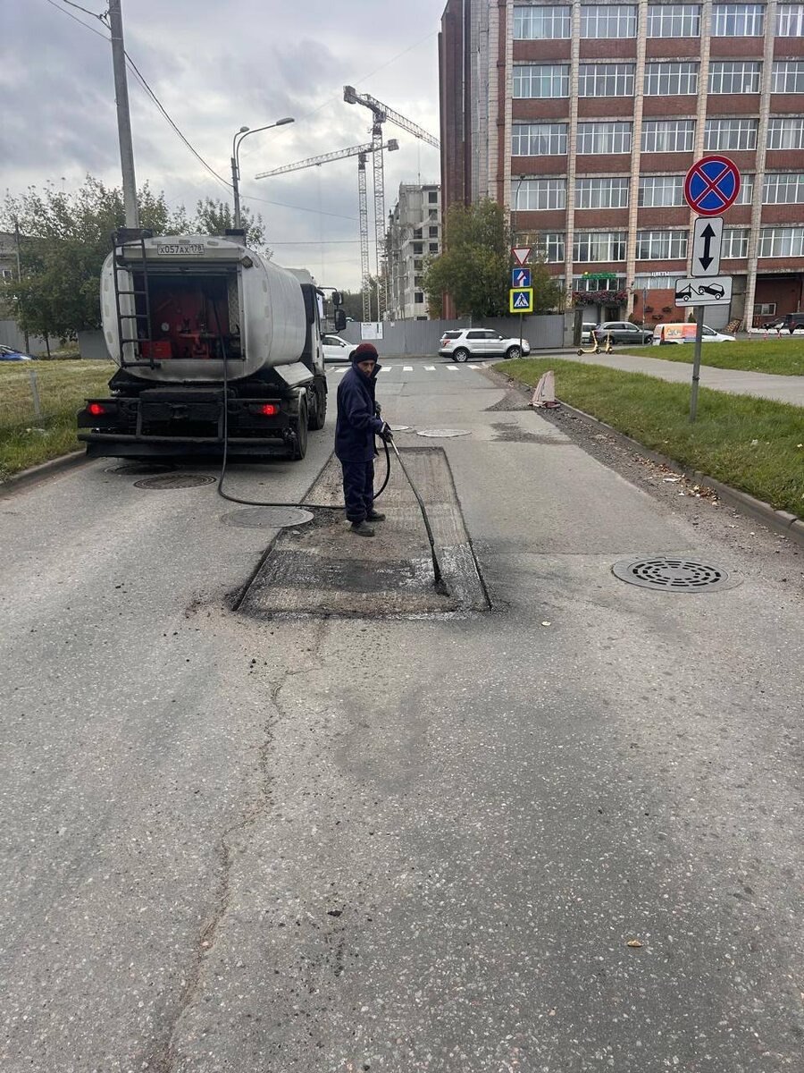 🚧 На Брантовской дороге около ТЦ «Охта Молл» залатали ямы