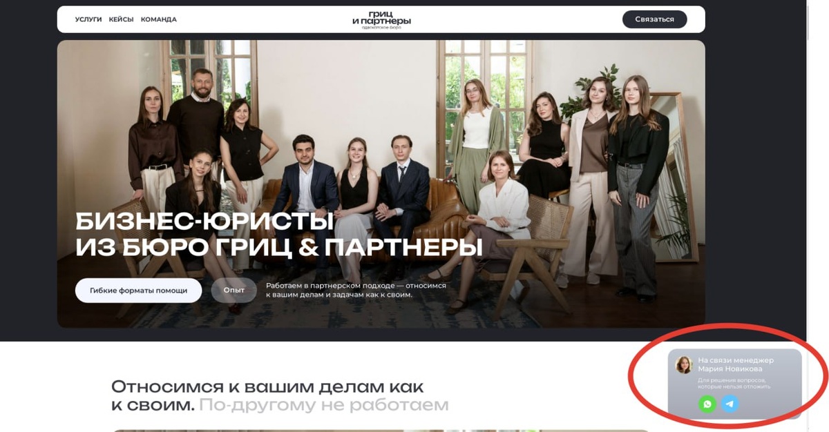 Сейчас в проекте делаем исследование юридических сайтов. Вот такая "Мария Новикова" отсутствует на 99% юридических сайтов. Простая история позволяет вам получить больше заявок и увеличить удовлетворенность от клиентов. P.S. Проверил на практике. Маша мне перезвонила в течение !5! минут. Браво!