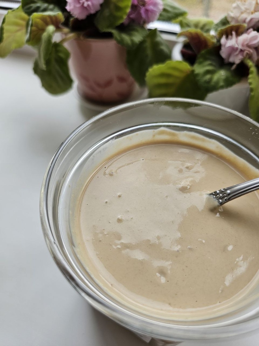 А вот и рецепт вкусного кунжутного соуса-майонеза. Он очень универсальный.