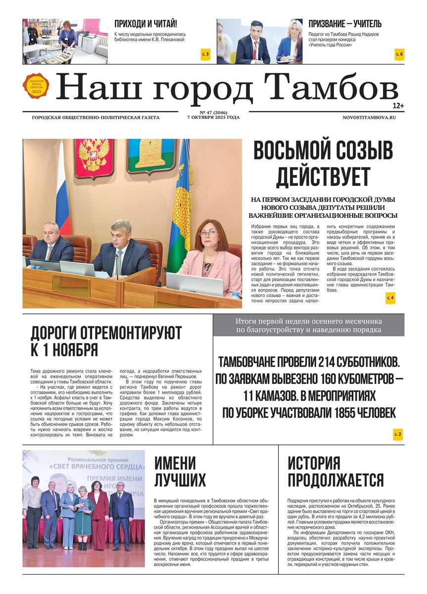 Эти и многие другие материалы по наиболее актуальным темам вы найдете на страницах газеты «Наш город Тамбов». Ищите в киосках города, читайте на сайте и ТГ-канале.