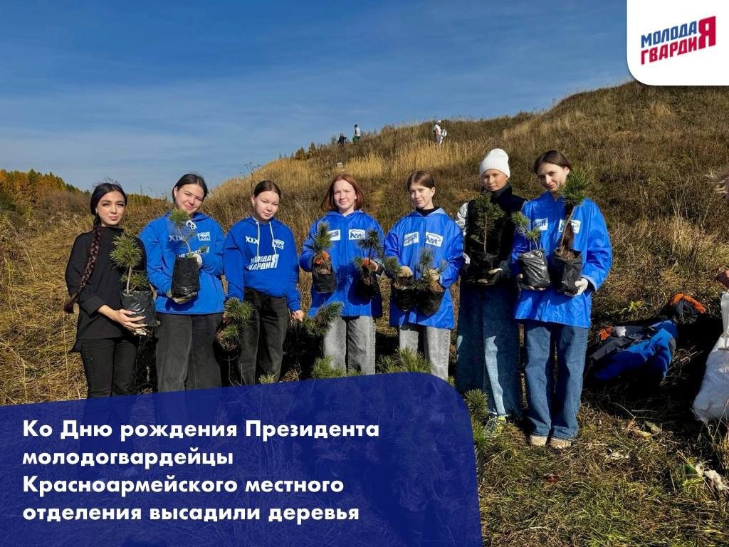В Красноармейском округе прошла экологическая акция, приуроченная ко Дню рождения Президента Российской Федерации Владимира Путина. Активисты местного отделения «Молодой Гвардии Единой России» вместе с жителями округа высадили деревья, чтобы создать противоэрозионную полосу на берегу реки Шатьма. «Каждое посаженное дерево — это вклад в экологию родного края и символ преемственности поколений, заботы о будущем России. Одновременно мы выражаем поддержку курса Владимира Владимировича на сохранение природного богатства страны», — отметила руководитель Красноармейского местного отделения Надежда Петрова. #ЕР21 #ЕРЧувашия