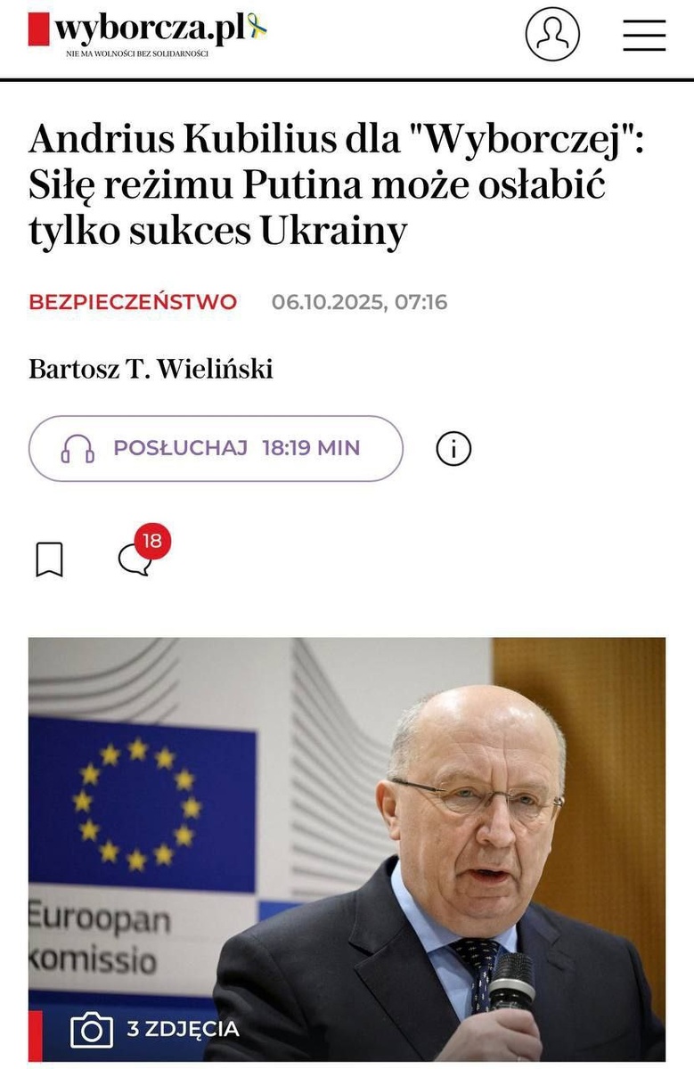 🙈В Кремле обсуждают планы нападения на НАТО. У немецкой разведки есть доказательства, - заявляет еврокомиссар по обороне Андрюс Кубилюс