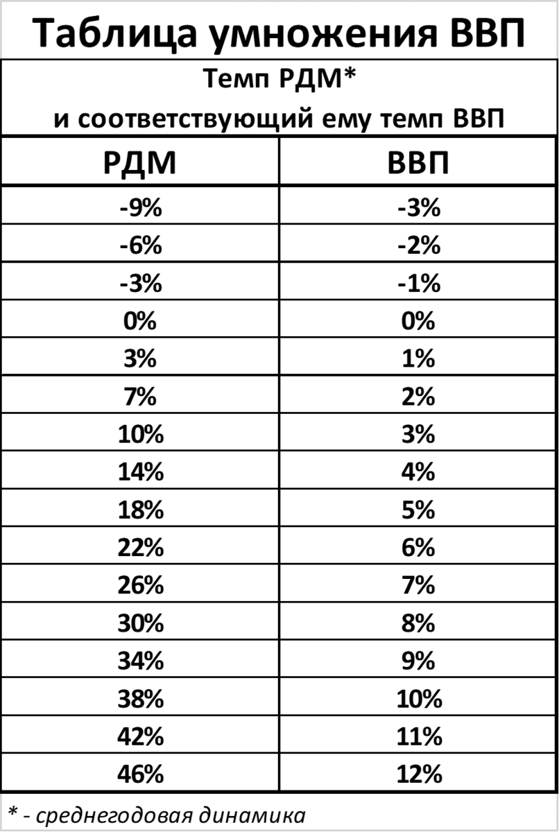 Рост реальной денежной массы даёт разный эффект на рост ВВП не только в разных странах, но и в разные периоды в одной и той же стране. Читатель спрашивает: почему в России рост реальной денежной массы хуже трансформируется в рост ВВП? Например: Российское соотношение роста РДМ и роста ВВП наглядно представлено в "таблице умножения ВВП". Источник: https://dzen.ru/a/ZAyAmiZBz1wX2HBM Получается, что рост РДМ в России как бы "менее эффективен", чем в Китае. Да, это факт, что в разных странах разное соотношение "темпы роста РДМ" / "темпы роста ВВП". Графически это выглядит как разный наклон кривой на графике РДМ - ВВП в разных странах (график 1). График 1. Математически -- это разные коэффициенты перед логарифмом переменной "х" (РДМ) в уравнении, связывающем ВВП и РДМ. Больше картинок и больше стран в статье "Инфляция и экономический рост" https://mpra.ub.uni-muenchen.de/78087/ Иначе говоря, у каждой страны своя индивидуальная "таблица умножения ВВП". Да, это факт, что даже в одной