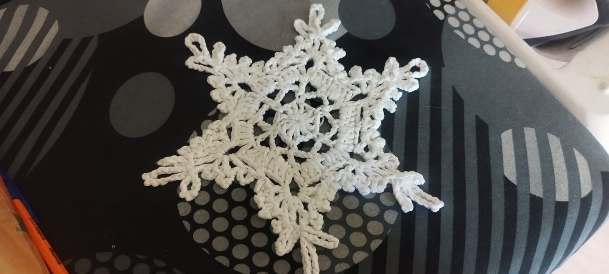 Фотка почти на коленке, но очень уж хочется запостить. Снежинка из светящейся пряжи с алиэкспресса. Вообще хочется немножко утончённости: взять тонкую пряжу, тонкий крючок, задолбаться на полдороги, но сделать красивую и изящную снежинку. Можно быть такое и случится #panda_lavanda_knit #pandalavanda #knit #вязание #яхурма #явяжу #хуманизация #снежинка #крючком