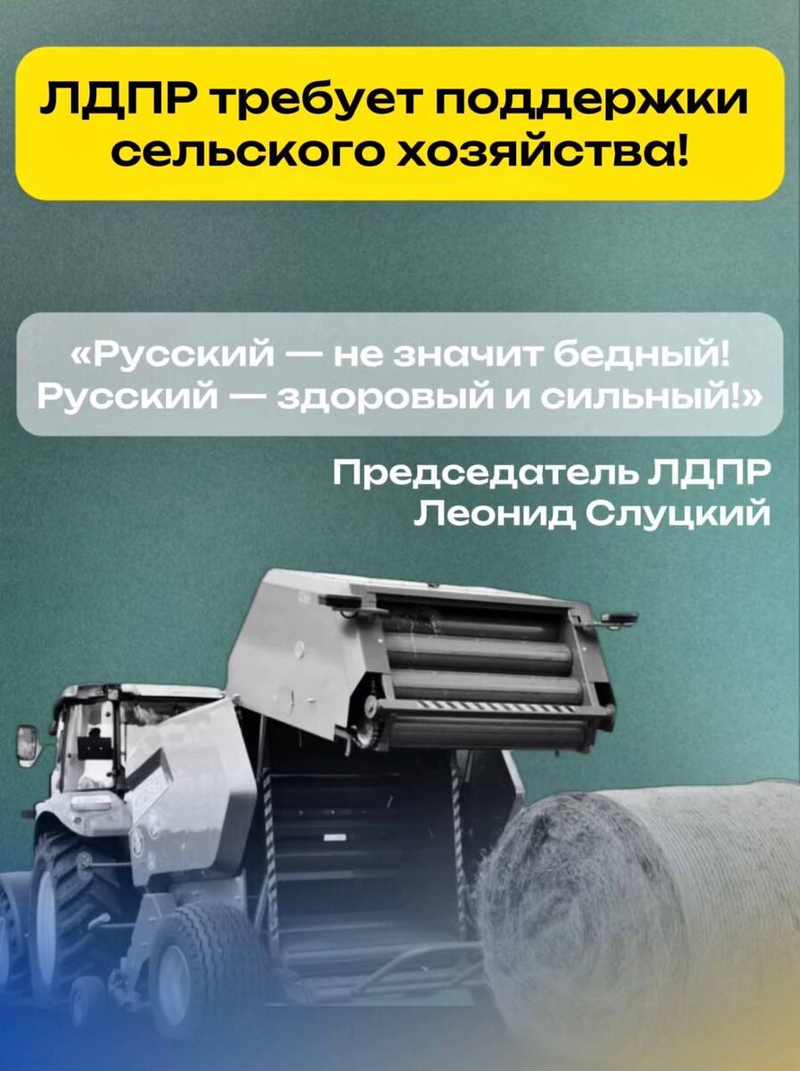 ❗️ Кризис в селе требует немедленных мер! ☝️ Скоро вся страна будет чествовать работников сельского хозяйства, но руководитель ЛДПР Леонид Слуцкий бьет тревогу: наши фермеры работают в тяжелейших условиях! 🚛 Ситуация в Республике Марий Эл не исключение, пока крупные монополии диктуют цены, а перекупщики забирают прибыль, наши труженики села едва сводят концы с концами. Люди пашут с утра до ночи, но достойного заработка нет, а молодежь уходит из отрасли. 📝 Последствия для нас очевидны: ❗️ На полках всё больше "пластиковых" продуктов с крахмалом и ароматизаторами. Натуральная, здоровая еда становится роскошью. ❗️Жители Марий Эл платят всё больше, а получают всё меньше и хуже. Мы рискуем стать больной нацией, отравленной некачественной продукцией. 📍 Без сильного села не будет сильной России! Все начинается с нашей земли и тех, кто на ней трудится! ✍️ Что ЛДПР предлагает для спасения сельского хозяйства Марий Эл и всей страны: 1. Справедливые цены! ЛДПР добивается установления ми