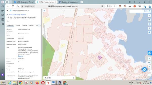 Название: земельный участок площадью 1238 кв.м., с кадастровым номером 53:05:0110802:191, расположенный по адресу: Российская Федерация