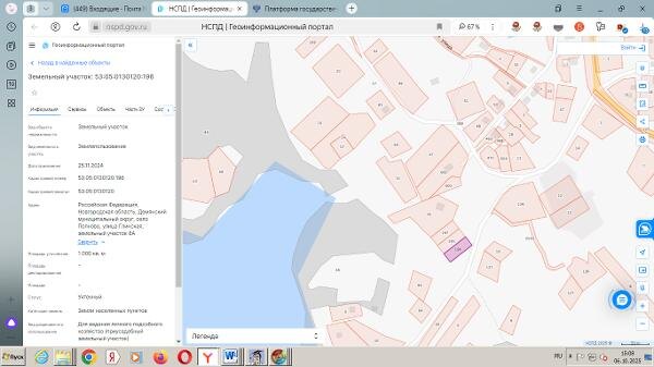 Название: земельный участок площадью 1000 кв.м., с кадастровым номером 53:05:0130120:196, расположенный по адресу: Российская Федерация