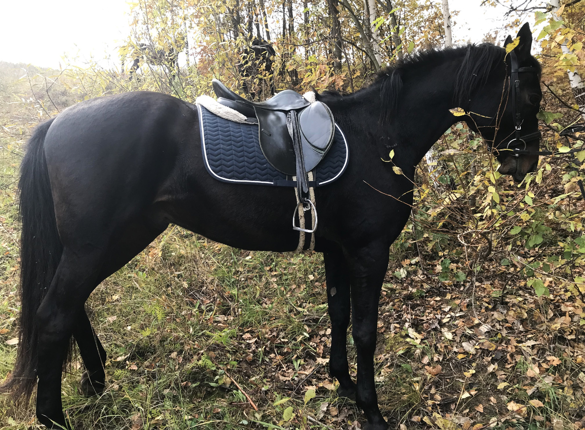В этом году лето прокралось потихоньку в нашу осень. И, несмотря на то, что леса и поля уже раскрашены в осенние яркие цвета, в каждом дне есть немного летнего тепла и уюта. В один из таких волшебных осенне-летних дней конный клуб «Радужный» подарил нам роскошную возможность выехать в небольшой поход на озеро с пикником. Я говорю «поход» – потому что выезд наш занял четыре часа, мы преодолели много сложностей, ехали по пересечённой местности и сложному ландшафту. Завершать летний сезон подобным выездом стало уже доброй традицией в клубе. В прошлом году мы выезжали по другому маршруту, можно прочитать об этом здесь. Нынешний маршрут был длиннее и интереснее. Мы пересекли проезжую часть и устремились в бескрайние поля. Удивительно даже, что в наш век тотальной стройки остались бескрайние просторы и огромные поля до горизонта. Проехали поле с фасолью, а затем целое царство подсолнухов. В одном месте повстречалось нам поле, засеянное люцерной, совершенно изумрудного летнего цвета – как б