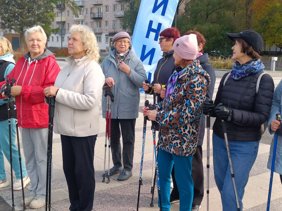 На набережной Александра Невского прошло спортивное мероприятие — северная ходьба, приуроченное ко Дню пожилого человека, который отмечался