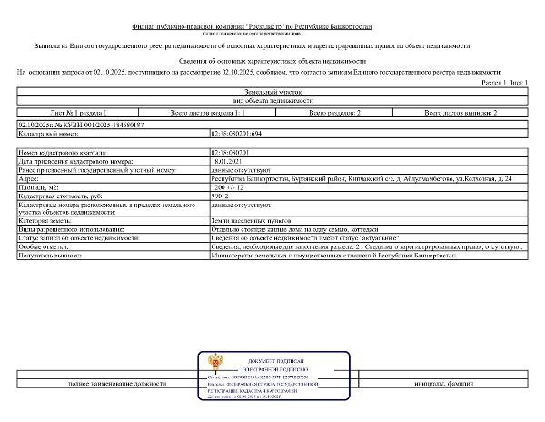 Название: Земельный участок с кадастровым номером 02:18:080201:694 площадь 1200 по адресу Республика Башкортостан, Бурзянский рaйон