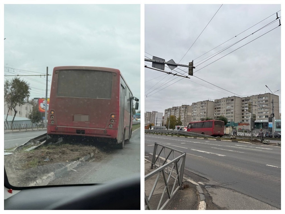 Автобус протаранил светофор на Московском проспекте в Ярославле