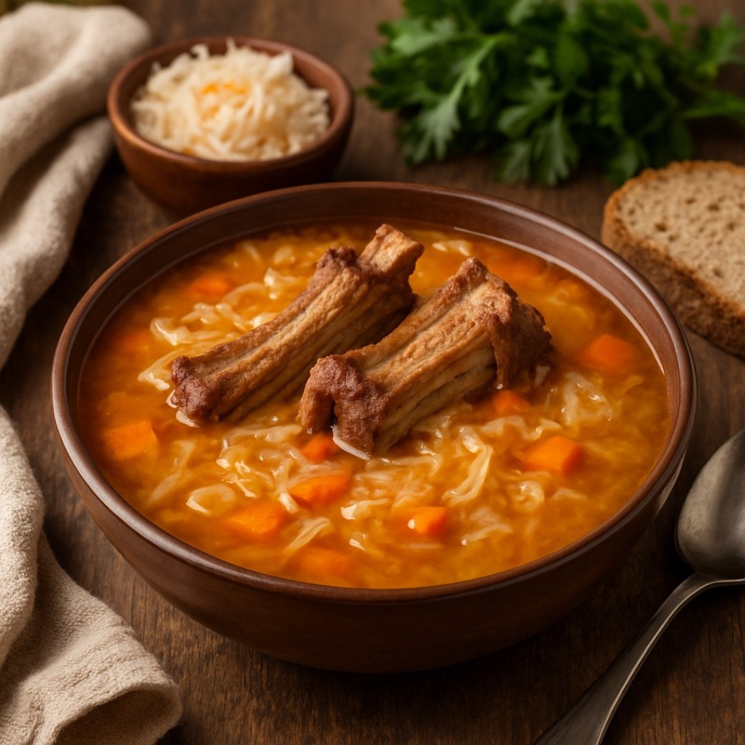 Кислые щи из квашеной капусты Ингредиенты ⤵️ 🔸 Квашеная капуста – 500 г 🔸 Свиные рёбрышки – 400 г 🔸 Картофель – 3 шт. 🔸 Морковь – 1 шт. 🔸 Лук репчатый – 1 шт. 🔸 Томатная паста – 2 ст.л. 🔸 Сахар – 1 ч.л. 🔸 Лавровый лист – 2 шт. 🔸 Растительное масло – 3 ст.л. 🔸 Сметана – 30 г 🔸 Зелень – 1 пучок 🔸 Соль, перец – 1 щепотка Приготовление🥣 1. Мясо залить 3 л воды, варить 1.5 часа. Достать, отделить от кости, бульон процедить. 2. Картофель нарезать кубиками, отварить в бульоне 15 минут. 3. Лук и морковь пассеровать на масле 5 минут. Добавить капусту (отжать рассол), тушить 15 минут. 4. Добавить томатную пасту и сахар, готовить ещё 5 минут. 5. Овощную зажарку и мясо переложить в бульон. Варить 10 минут. 6. Добавить лавровый лист, соль и перец. Дать настояться 20 минут. 7. Подавать со сметаной и зеленью. Рецепт дня #кислые_щи #капуста #квашенная_капуста #свиные_ребрышки #суп #обед
