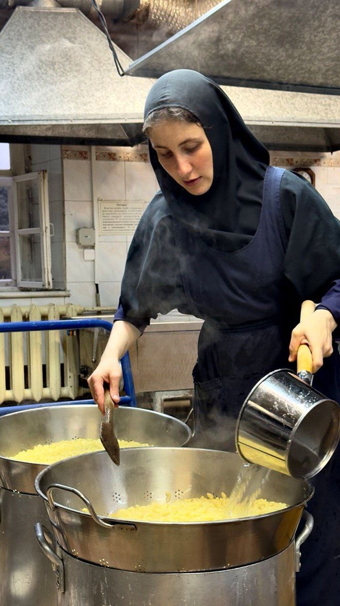 На монастырской кухне сестры с молитвой готовят обед для насельниц монастыря, рабочих и паломников