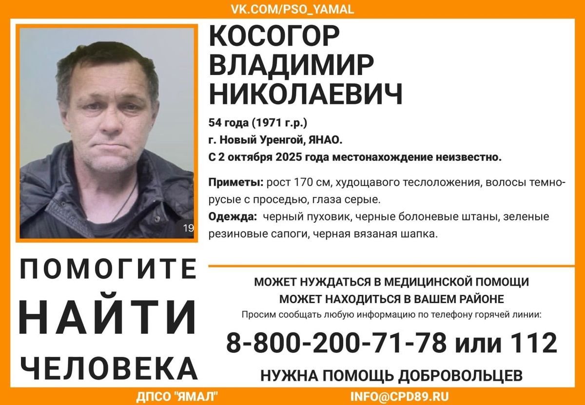 9️⃣🔟🔢 В Новом Уренгое разыскивают 54-летнего мужчину
