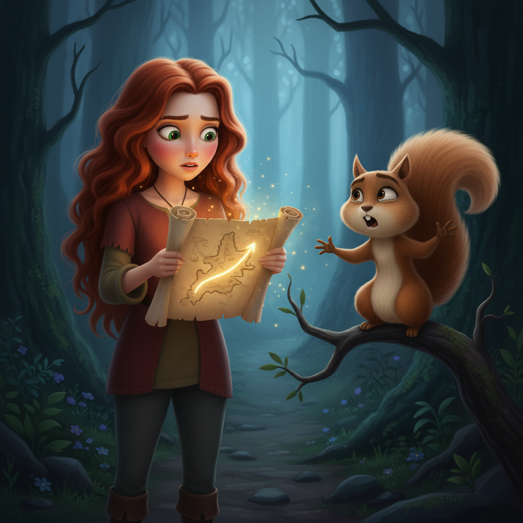 — Ох! — Орешка всплеснула лапками. — Как хорошо, что я с вами! Эта карта совсем устарела. Правая тропа ведет прямиком в Зачарованный лес.