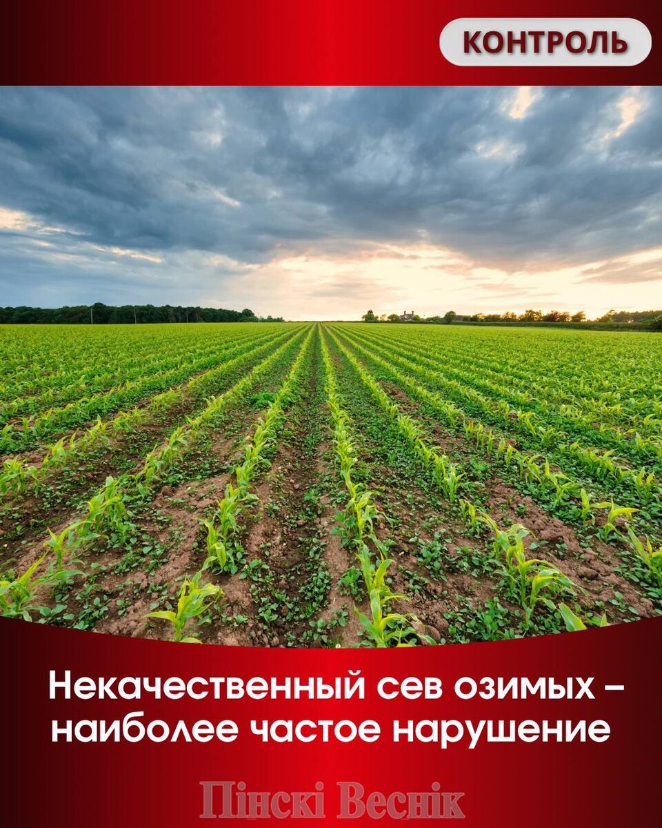 📎📎📎📎📎📎📎📎📎📎 ✅В Брестской области выявили нарушения при севе озимых. Проверки прошли в шести районах: Березовском, Жабинковском, Каменецком, Малоритском, Пружанском и Кобринском. Основные нарушения: 🔵некачественный посев (семена на поверхности или неправильная глубина) 🔵недостаточное внесение удобрений 🔵нарушения при заготовке кормов ✅Информация направлена местным властям для принятия мер. Контроль продолжается. #Контроль #Сев #Озимые 📍📍@Пинский Вестник ЮТУБ | САЙТ| ИНСТ | ВК | ОК | ФЕ | Прислать новость