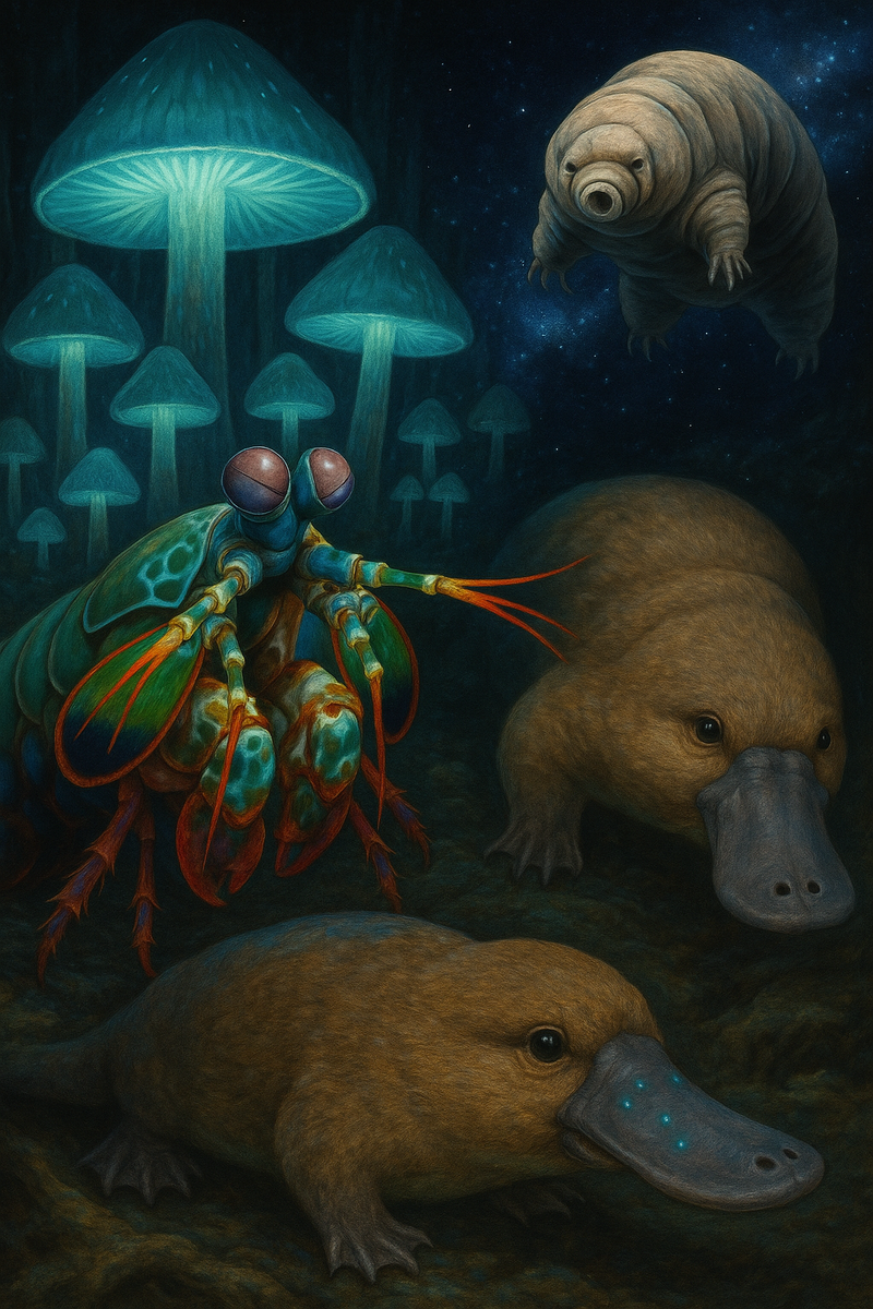 Готовы ли вы к правде? Наша планета населена существами, которые нарушают все законы логики. Они летают без крыльев, видят невидимое и воскрешают из мертвых. Ophiocordyceps unilateralis — гриб-зомбификатор. Он попадает в муравья, полностью подчиняет его нервную систему и забирает над телом контроль. Это вдохновило сериал «The Last of Us» Его глаза — самые сложные в природе. Они видят: Его удар клешней — быстрее пули. Скорость 80 км/ч под водой создает кавитационный пузырь, который светится и нагревается до температуры солнца. Существо, способное выжить: Секрет — состояние криптобиоза: тихоходка превращается в бочку, замедляя метаболизм на 99.99%. В бразильских лесах растет ****-дерево. Его листья расположены так, что конденсируют влагу из тумана. Каждую ночь дерево «вызывает» дождь только для себя — вода стекает по ветвям прямо к корням. Ученые думали, что это розыгрыш, когда получили его шкуру: Единственное млекопитающее, которое ищет добычу с помощью электрического поля. Turritopsis