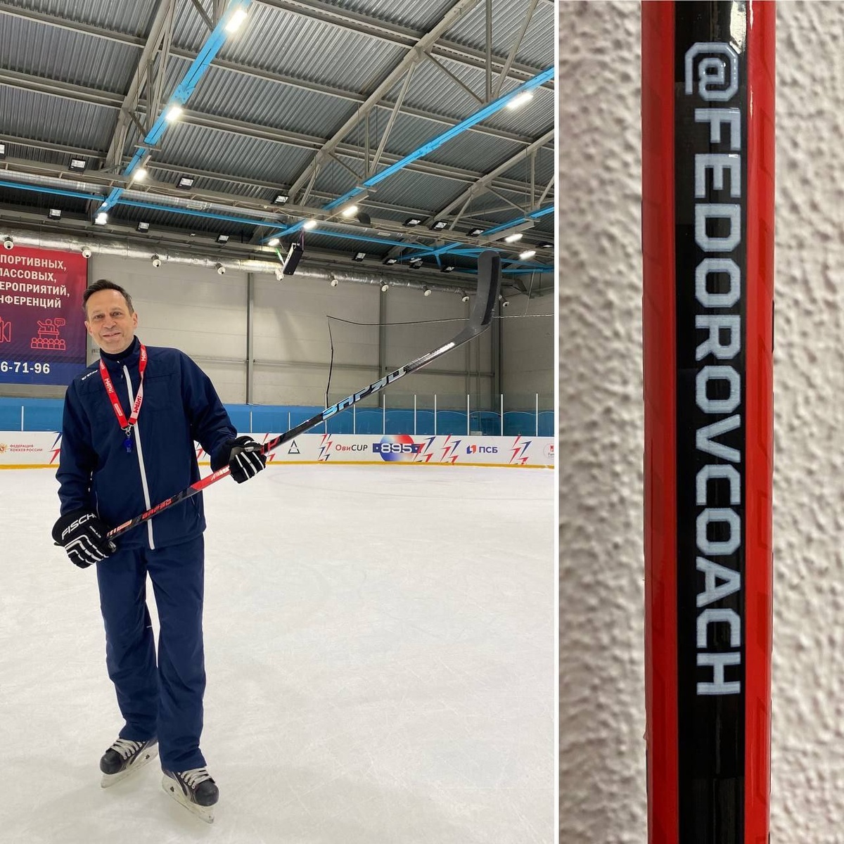 У нас в команде много хоккеистов, играющих клюшками «ЗаряД». Эти клюшки закупает клуб, поэтому я не выделяюсь на общем фоне. Только на палке мне сделали красивую надпись на заказ @fedorovcoach – это мой никнейм в телеграме. Думаю, для клюшки тренера в молодёжной команде – это в самый раз».