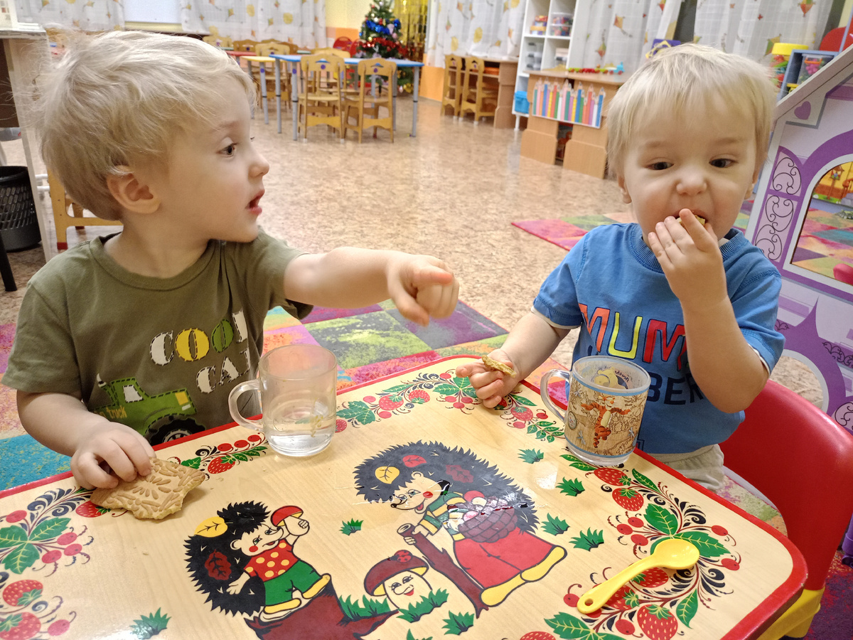 С каждым днем он заходил всё лучше и лучше, вёл себя в группе достаточно спокойно, но.. по прежнему ничего не ел и не пил.. Первую неделю мы его не сажали за стол вообще, потому что сразу был крик. Дальше начали потихоньку сажать, приучая к правилам садика. На второй неделе он сидел за столом полубоком. На третьей ноги уже были под столом и было съедено яблочко. Мама уже забирала его с прогулки, в 11:30. На обед возвращаться не было смысла - он бы ничего не съел,да и боялись мы с ним поторопиться и "спугнуть".