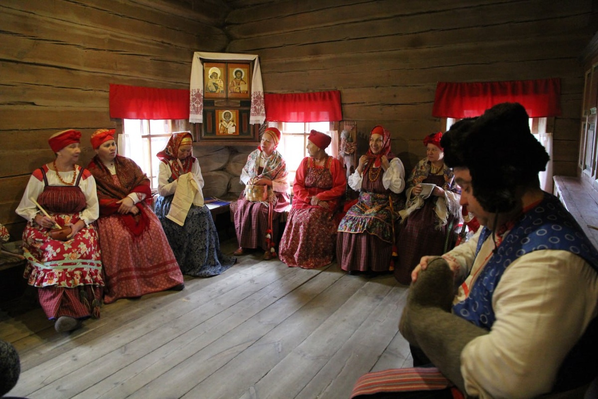 «Малые Корелы» приглашают на «Покровские посиделки» 19 октября в музее-заповеднике «Малые Корелы» состоятся «Покровские посиделки». Праздник пройдёт на территории Каргопольско-Онежского сектора. В полдень на центральной площади артисты театра «Новиця» покажут этнографическую картинку «Покров – конец хороводам, начало посиделкам». «Впервые в течение праздника мы покажем три фольклорных программы, в том числе молодёжные и женские посиделки», – сообщила заведующая отделом этнографических программ и массовых мероприятий Юлия ВОЛОВА. С наступлением холодов гулянья переносились с улицы в дом. Девушки выкупали избу у хозяйки, приносили рукоделие, пели песни, поджидая парней. Те приходили с гармонью и угощением: приносили орехи и сладости. На таких вечёрках молодёжь присматривала себе пару. Фрагмент таких посиделок с кадрилями и народными играми можно будет увидеть в творческой мастерской в 12.10. В 13 часов здесь же начнутся «Женские посиделки»: на такие вечёрки жёнки собирались без гармо