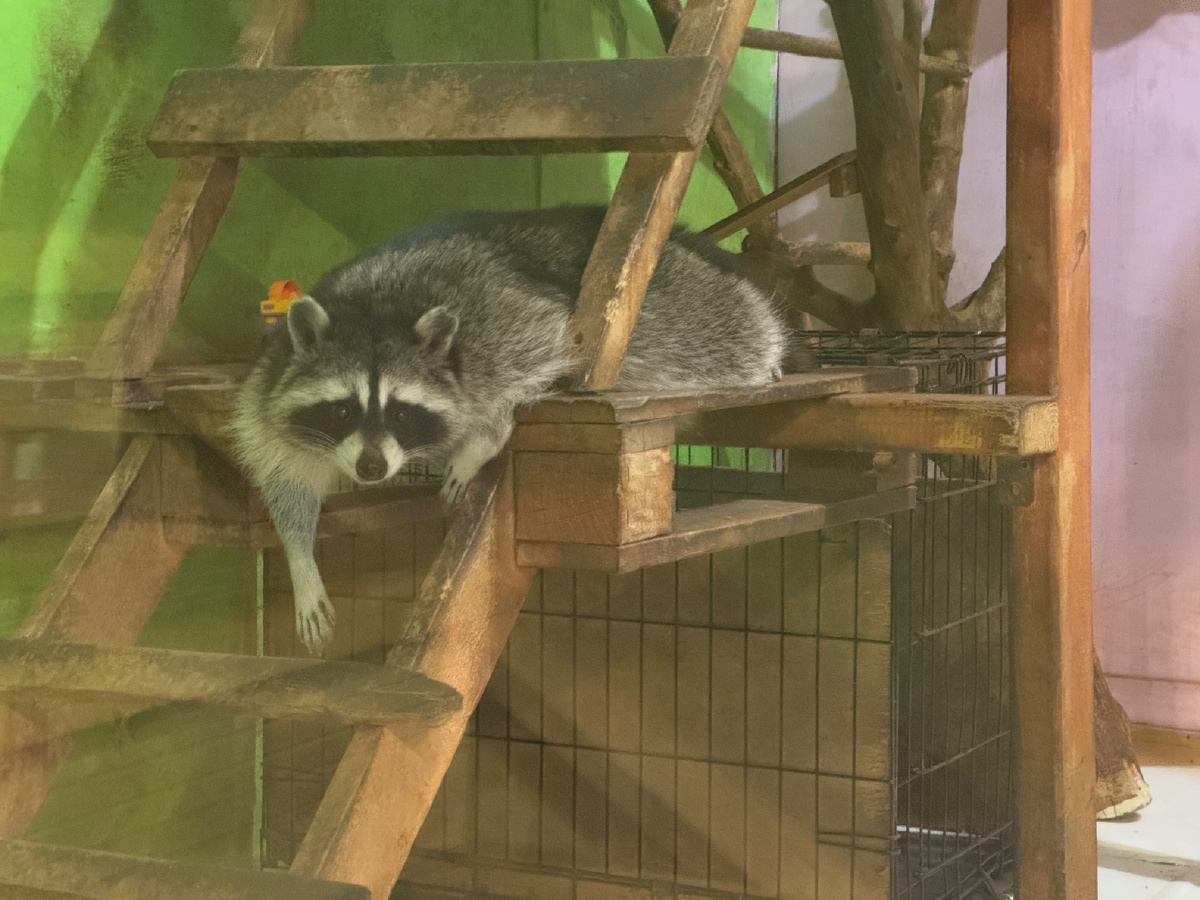 На входе предупреждают: достаньте всё из карманов, снимите украшения, телефоны — на полку. Если не послушаешься, еноты сами помогут. Они мгновенно находят, где у тебя резинка, ключ или блестяшка, и уверенно вытаскивают добычу.