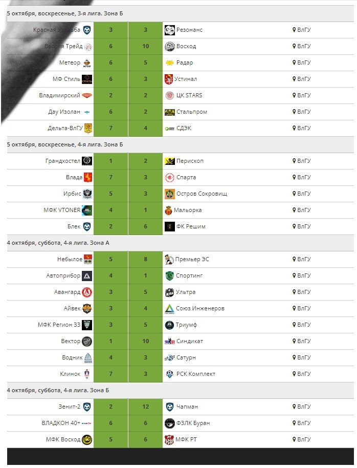 ✅ИТОГИ ИГРОВЫХ ДНЕЙ В ВлГУ: технические результаты матчей