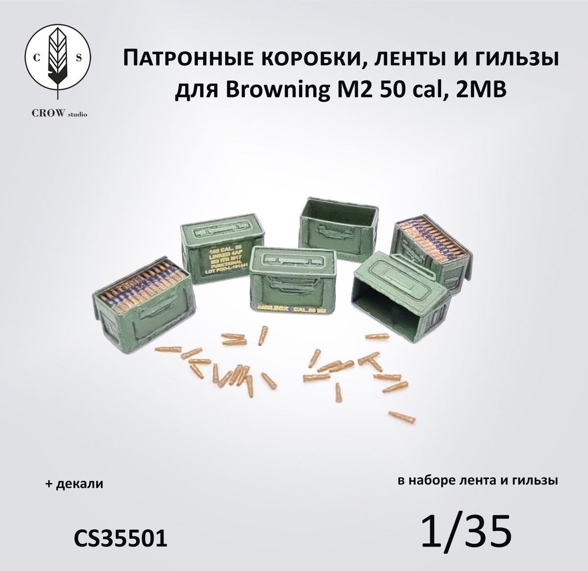 Санкт-петербургская CROW Studio выпустила на 3D-принтере патронные коробки с патронной лентой для моделей пулемета Browning M2 50cal. в масштабе 1/35.