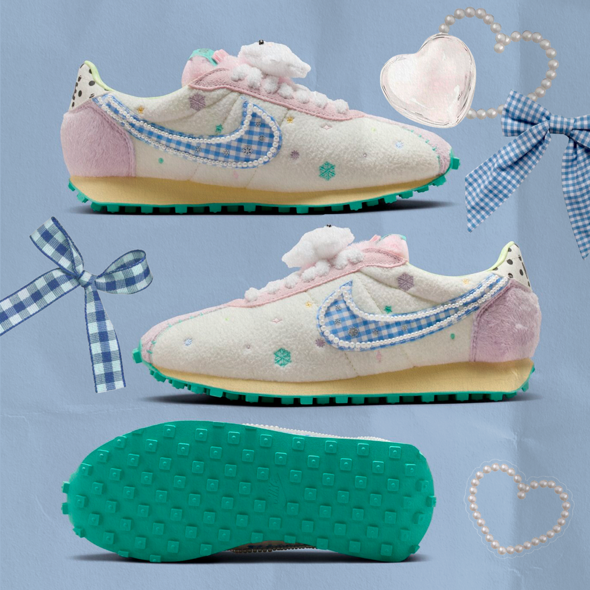 Новенькая специальная версия Nike LD-1000 в честь Дня культуры Японии — то, как мы представляем себе реально милые пары. Пушистые текстуры, мягкие пастельные цвета, вышивки, жемчуг, плюшевая игрушка в виде звездочки… Буквально смотрим на эти кроссовки влюбленными глазами. Сильно мило или пойдет? Больше интересного на нашем сайте POIZON