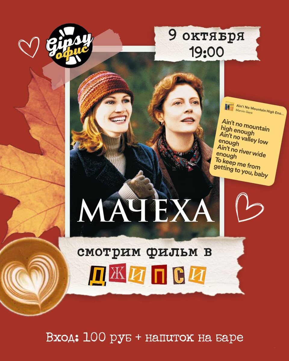 Киновечер с фильмом «Мачеха» 🗓️ 9 октября 19:00 📍Gipsy офис История о сложных отношениях, искренних чувствах и неожиданной любви, которая меняет всё. 🏷️ 100₽ + любой напиток По вопросам бронирования: @oyanilina #9октября25@culturnik