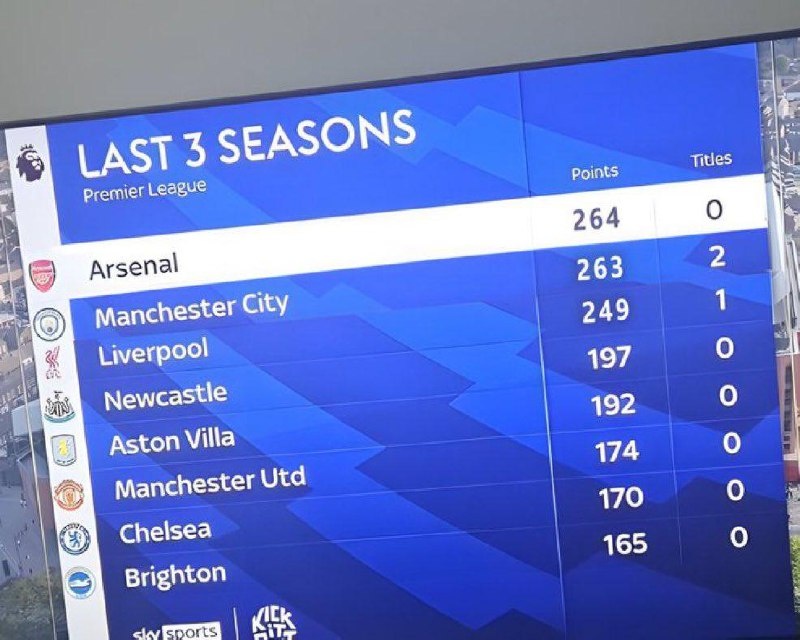 Рейтинг команд Премьер-Лиги по количеству набранных очков и завоеванных титулов Премьер-Лиги за три последних сезона📊