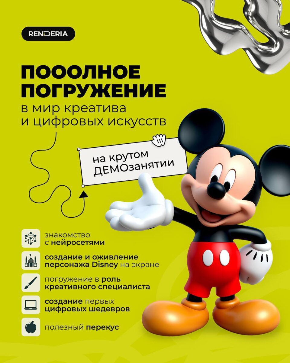 Поооолное погружение в мир креатива и цифровых искусств вместе с нами! 🧑🎨 💻 Приглашаем на увлекательное занятие по работе с нейросетями + Бонус для родителей: занятие бесплатное! На ДЕМОзанятии ваш ребенок: 👉 познакомится с самыми актуальными технологиями — нейросетями 👉 создаст своего персонажа Disney и оживит его прямо на экране 👉 почувствует себя настоящим креативным специалистом и создаст свой первый цифровой шедевр 🍏 полезный перекус для всех участников Спешите забронировать место прямо сейчас и открыть дверь в мир безграничных возможностей — https://korolev.renderia.ru/ Количество мест ограничено! * До встречи 12 октября в 12.00 г.Королев, Пушкинская, 15