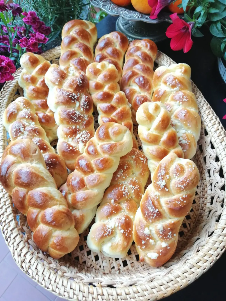 Сладкие косички — это мягкое дрожжевое тесто, посыпанное сахаром или мучной крошкой, идеально подходящие к чаю. Для приготовления этого простого рецепта вам понадобится всего несколько ингредиентов: мука, молоко, сахар, дрожжи, масло, яйцо и ванилин. 500 гр. муки 100 гр. сахара 25 гр. свежих дрожжей 0,5 чайной ложки соли 200 мл молока 1 яйцо 1 яичный желток 50 гр. сливочного масла 1 столовая ложка ванильного сахара Дополнительно 1 небольшое яйцо для смазывания косичек перед выпечкой. Начинаем с приготовления закваски. Налейте 50 мл молока и подогрейте его. Раскрошите дрожжи в молоко, добавьте 1 столовую ложку сахара, 1 столовую ложку муки. Перемешайте, накройте пищевой пленкой и оставьте в теплом месте для подъема примерно на 10–15 минут. Подогрейте оставшееся молоко и растопите в нем масло. Насыпьте в чашу миксера муку, соль и сахар и перемешивайте на самой низкой скорости. Добавьте поднявшиеся дрожжи, цельное яйцо, яичный желток, ваниль и молоко с растопленным маслом. Вымешивайте те