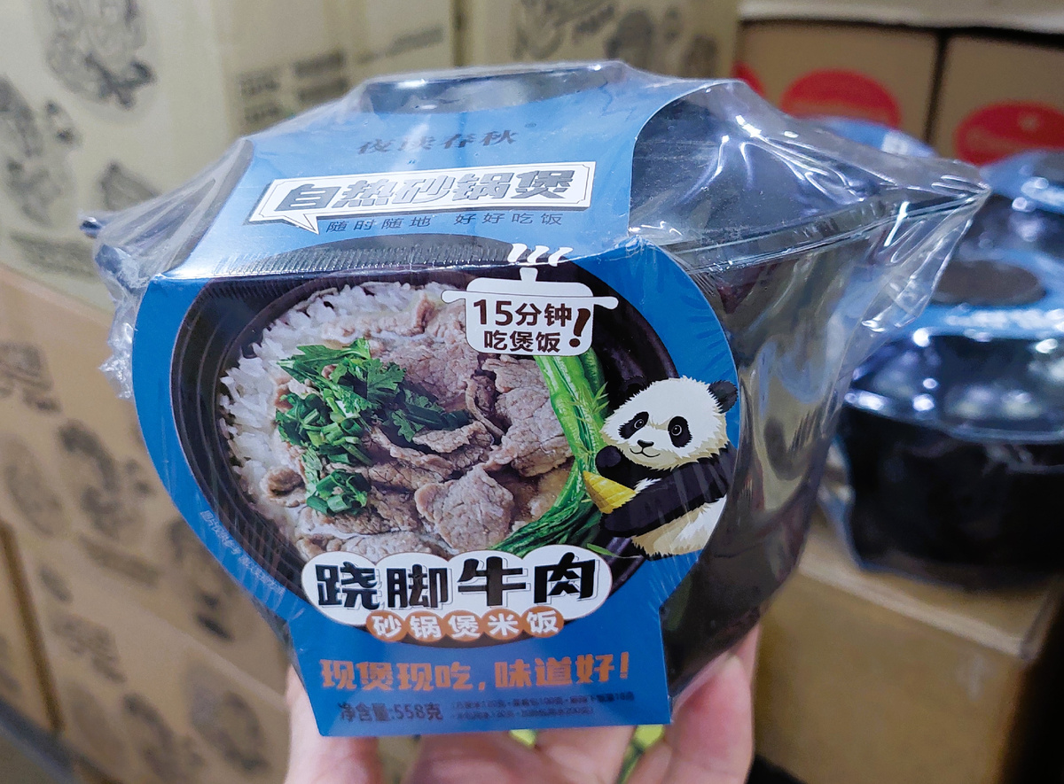 Готовая еда саморазогревающаяся. В упаковке вы найдете два пластиковых контейнера. В нижний укладывается разогевающий элемент, он будет, как печка. В верхнем контейнере- 3 разных отсека. В них раскладываются концентраты риса, подливы и супа. Наливается вода на нагревательный элемент и горшочек варит. Через 15 минут можно открывать и кушать готовую горячую еду. Удобно в дороге, на работе или в других похожих обстоятельствах.