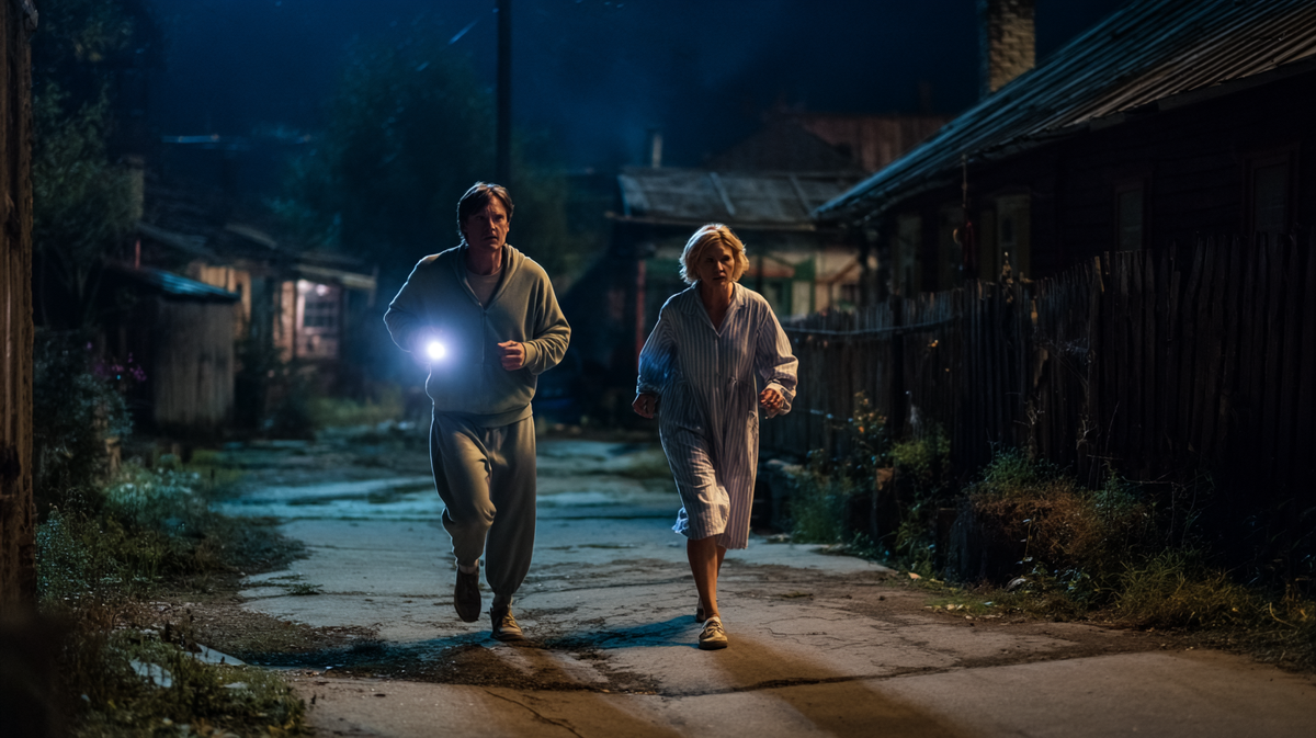 Иван схватил фонарик, и они побежали по улице.