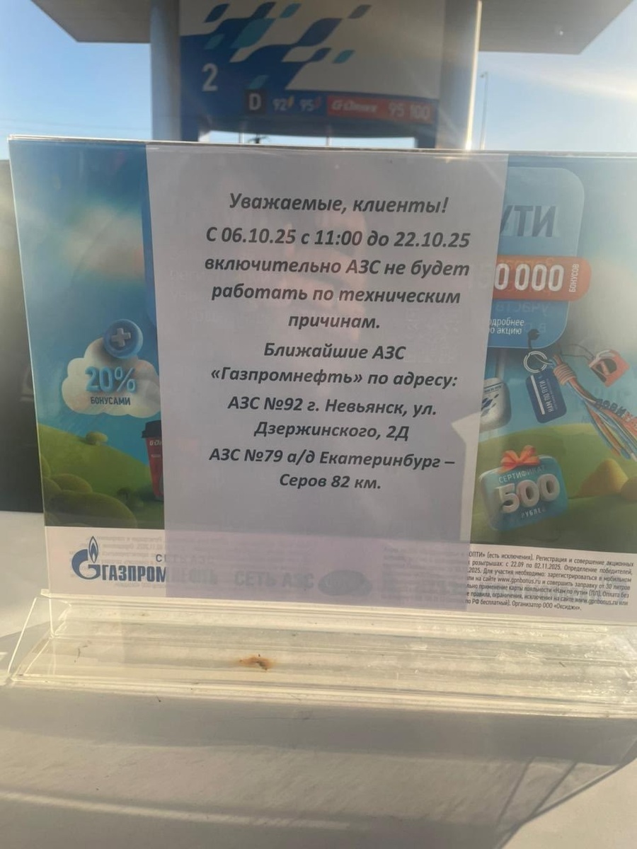 АЗС-80 в Невьянске, расположенной на автодороге Екатеринбург — Серов. С 6 по 8 октября на заправке проводится плановая зачистка и калибровка резервуаров, а с 9 по 22 октября запланированы ремонтные работы по перекладке топливопроводов. "Ряд телеграм-каналов и СМИ ошибочно утверждали, что причиной временного закрытия АЗС-80 стала «нехватка топлива» или «дефицит бензина». В действительности все крупные поставщики располагают достаточными запасами горюче-смазочных материалов", - сообщает "Антитеррор Урал"