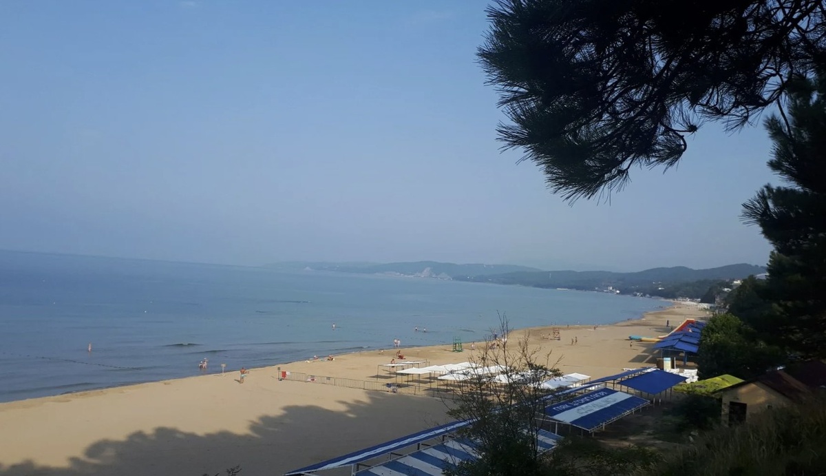 Морской берег у села Пляхо рядом с Туапсе окружён соснами и мягкими холмами. Здесь приятно гулять утром, когда море ещё тихое.
