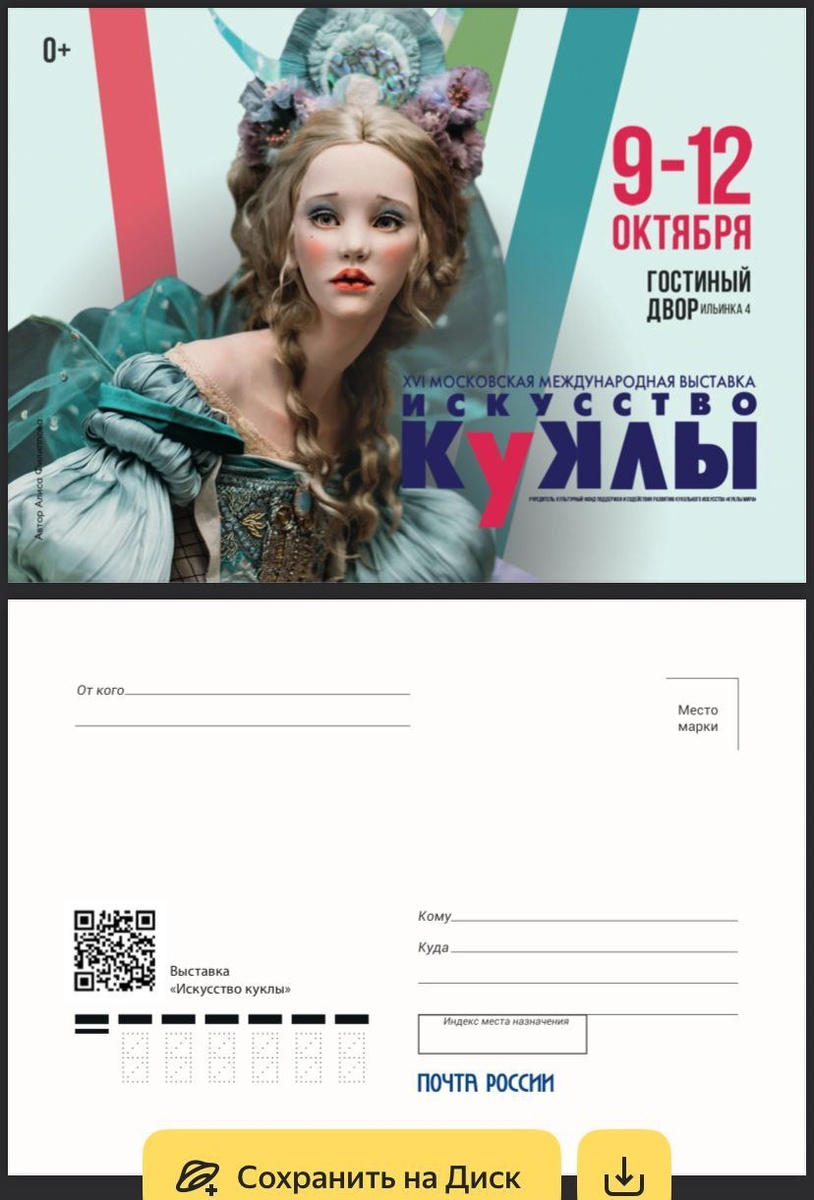 Супер новость! 9-12 октября прямо с выставки все желающие могут бесплатно отправить в любую точку России памятную открытку «Искусство куклы»! Открытка с афишей выставки выпущена лимитированным тиражом - 3000 штук. А наш партнер - Почта России - проштампует её специально сделанным штемпелем с куклой! ❤️Почта России совместно с Искусством куклы организуют бесплатную отправку тематических открыток по России с эксклюзивным штемпелем — куклой всемирно известной художницы Алисы Филипповой. Подарите вашим друзьям и близким (и себе!) частичку выставки в виде уникальной почтовой открытки! ❤️Площадка Почты России с почтовым ящиком будет расположена недалеко от оргкомитета (см.схему). Вы можете за столиком самостоятельно подписать открытки и опустить в ящик или передать нашей сотруднице-почтальону список адресов: она заполнит открытки за вас в любом количестве. А вам не придется терять время. ⏩Когда: 9-12 октября 2025 г. Где: Россия, Москва, Ильинка, 4, Гостиный двор. ❤️Билеты на гости