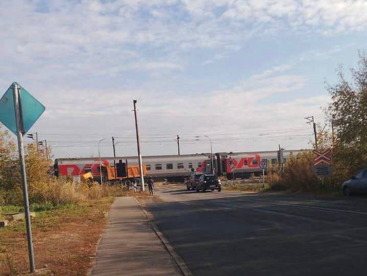 В Татарстане самосвал снес шлагбаум и встал перед пассажирским поездом (видео)