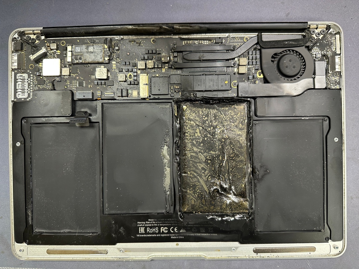 Ужасы нашего городка: люди перед сном поставили MacBook Air на зарядку, а ночью проснулись от взрыва и едкого запаха — аккумулятор рванул! Вскрытие показало вздутие и расплавление одной из банок батареи. Скорее всего, ячейка уже дулась какое-то время, но пользователь не замечал этого. В итоге оболочка протерлась, банка замкнула на металлический корпус и вот что вышло. К счастью, алюминиевый корпус Макбука сработал как железная бочка для утиля батарей и последствия за пределы корпуса не вырвались. Правда, вопрос сохранности данных еще изучаем — термо-удар как раз пришелся в накопитель. Поэтому еще раз напомним про важность периодической профилактики своих машин. Заезжайте периодически в сервисные центры, пусть там вскрывают крышки, проводят чистку, визуальный осмотр и тесты — иногда это позволяет предупредить проблему еще до того, как она даст о себе знать. Для наших клиентов и подписчиков такой чекап Макбуков всегда бесплатен. @fixed