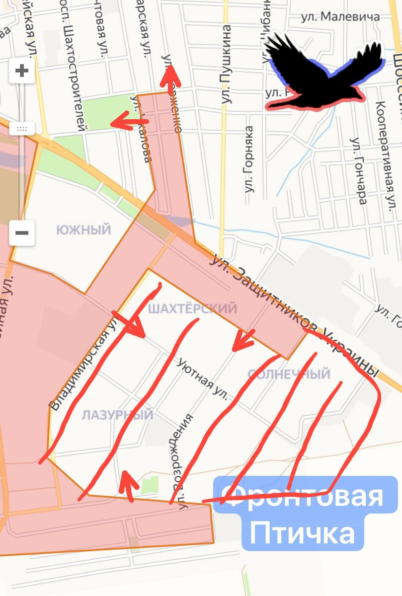 В Покровске ВС РФ 🇷🇺 провели сильный штурм, удалось взять целых 3 мкр: Лазурный, Шахтёрский и Солнечный, также уничтожен взвод нацистов в