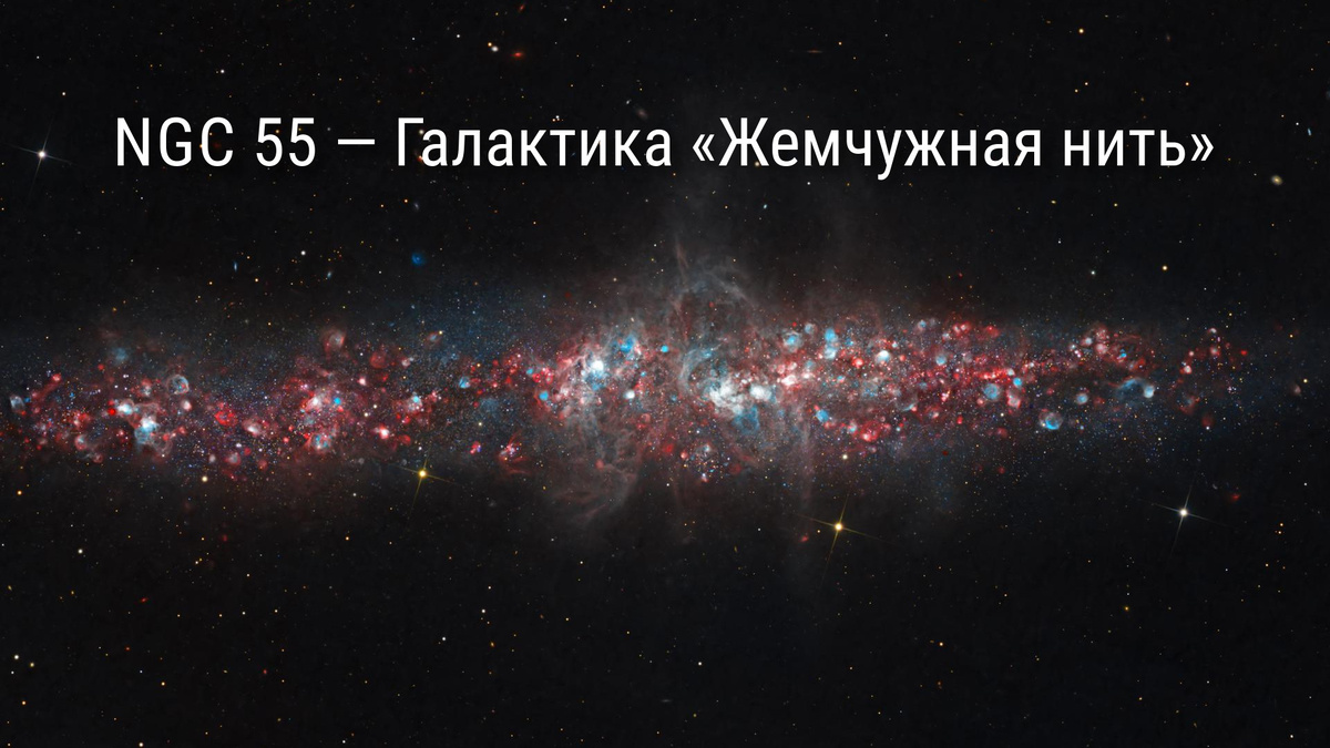 Когда 200 лет назад шотландский астроном Джеймс Данлоп обнаружил этот странный веретенообразный объект, о других галактиках в астрономии не было и речи. Были два основных типа объектов (кроме банальных звёзд и тел Солнечной системы) — туманности и звёздные скопления (которые тоже иногда выглядели как туманности). Поэтому NGC 55 первоначально именовалась как "Туманность «Жемчужная нить»", а в телескоп выглядела как очень тонкая и слегка диффузная полоска без отчетливо различимых деталей... Никто из наблюдателей не мог сказать, чем именно вызвало сравнение с жемчугом, и уж точно пересчитать жемчужины никому не было под силу, но все сходились во мнении, что объект этот не так прост, как большинство туманностей, и наверняка его структура таит в себе удивительную детализацию, невидимую в телескопы того времени. Каким образом наблюдатели прошлых веков подмечали нечто за гранью визуального восприятия, это до сих пор не известно. Возможно, мы этого никогда не узнаем, потому что сейчас так прис