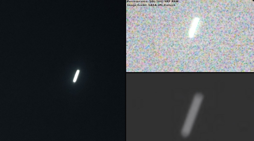 Пока неизвестно, что именно попало в кадр Perseverance — отражение, пылевой след, дефект камеры или действительно пролетающий межзвёздный объект. Но сам факт того, что после усиления цветовых спектров и фильтрации данных продолговатая форма остаётся чёткой и симметричной, заставляет относиться к этому кадру внимательнее.